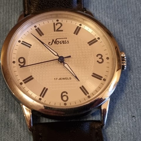 Novus 17 rubis incabloc kullattu 40 mikronin rannekello kuluneella kotelolla, Swiss Made