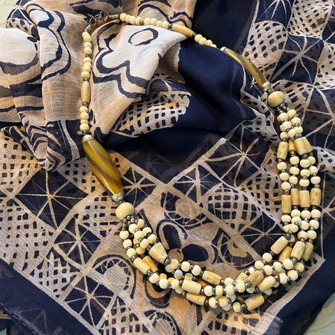 Kaulakoru 55cm ja ohut sifonkihuivi musta-beige 85x85