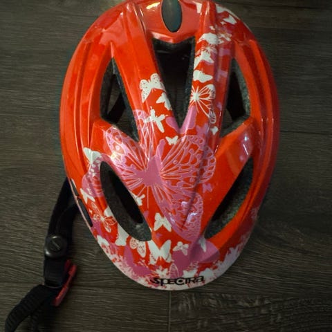 Lasten pyöräilykypärä. Joku naarmu styroksissa, mutta ei haittaa menoa.