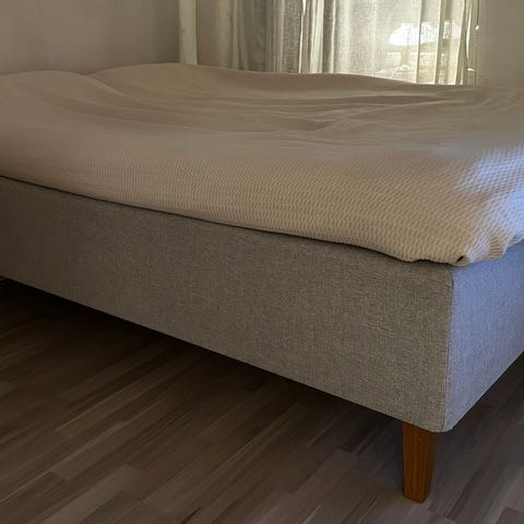 Tämä sänky tosiaan 1,5v vanha ja on kuin uusi, eli missään ei ole painaumia tai jälkiä. Mukavan napakka sänky. Tästä laadukas suomalainen sänky hyvään hintaan.