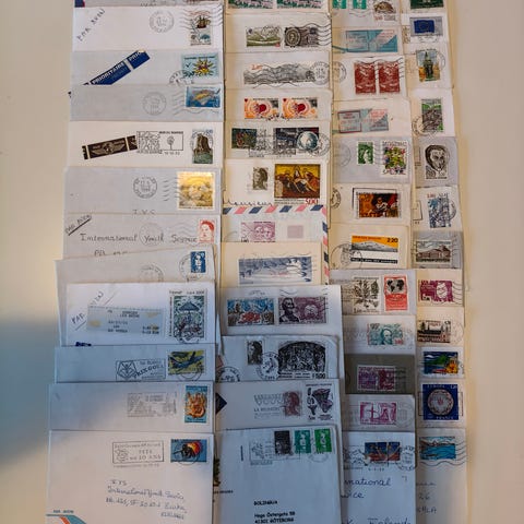 Kuoret merkkeineen, joita yhteensä 58 kpl, enimmäkseen 80- luvulta.
