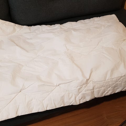 Trikootilkuista tehty vauvan peitto esim.autoon. Takana fleece. Käyttämätön. Koko 80cmx52.