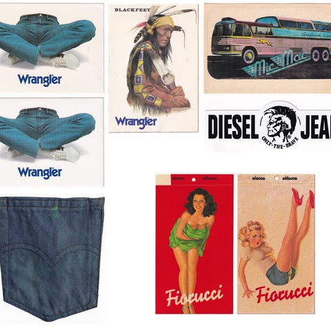 Hieman harvinaisempia farkkutarroja, Bee Gee , Mig-Mac, Wrangler, La Paz ja Lee Cooper.