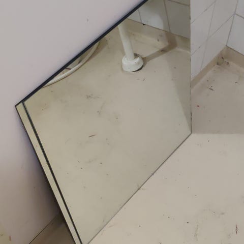 Peili on saanut iskun alaosaan(pitkä särö lasissa )ja kukkatarralla on peitetty se!! koko:leveys79 cm korkeus 180cm,takana pitävä rautalanka kiinnitys!