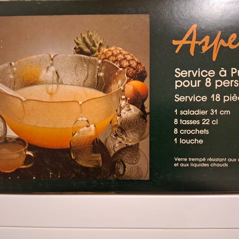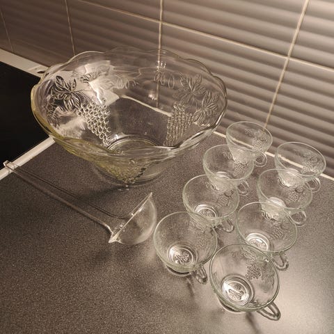 8 lasia ja kauha mukaan. Pientä käytön jälkeä mutta hyvä kokonaisuus.