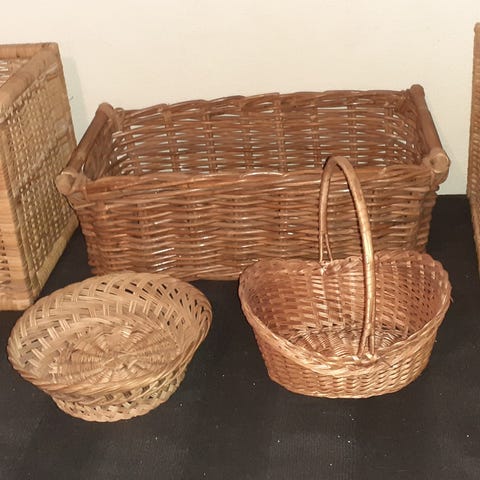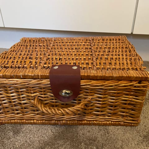 Myydään punottu laukku, kassi. Sopii esim pari termospulloa. Tai sitten ihan vaan koristeeksi. Pohja 9 x 20 cm, korkeus ilman kahvoja 33cm.