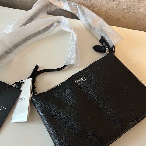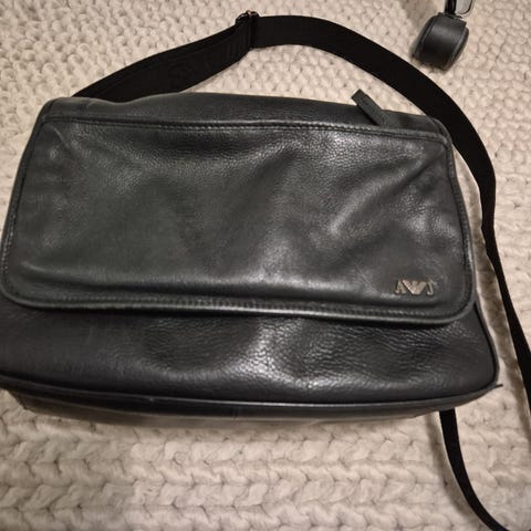 Armani nahkainen miesten laukku. Laukussa on useita taskuja ja vetoketjullisia osioita. Laukun sisäpuoli on vuorattu ja siinä on erillisiä tiloja esimerkiksi asiakirjoille tai pienemmille esineille. Laukku soveltuu miesten käyttöön ja on valmistettu nahasta.