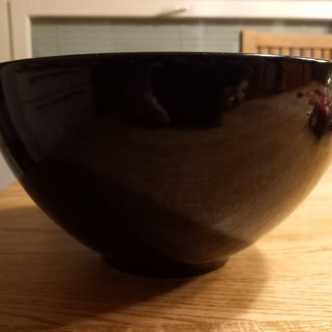 Arabian Kilta-sarjan kolmionmallinen kulho, koboltinsininen. Suunnittelija Ulla Procopé, korkeus 10,5 cm ja paino 1,21kg.