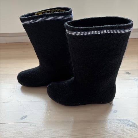 Perinteiset mustat Jantuset-huopikkaat. Koko ilm. 37-38, pohjan ulkopituus 26 cm.