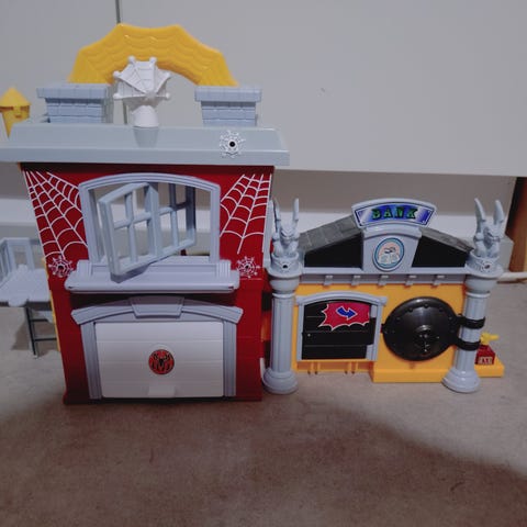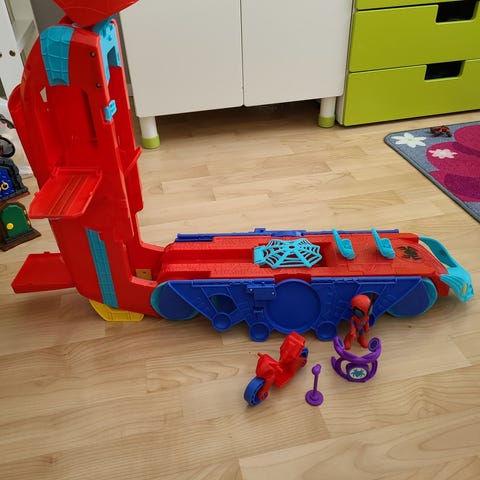 Spidey päämaja rekka äänillä ja oheistarvikkeilla. Kansi taittuu ihan pystyasentoon, jolloin siitä tulee korkea päämaja. Tullut uutena ja lapsi liimaillut tarroja (saa poistettua halutessaan). Kaikki osat tallessa ja äänet sekä valot toimivat. On sen verran iso, että mielellään nouto. Postitus onnistuu myös.