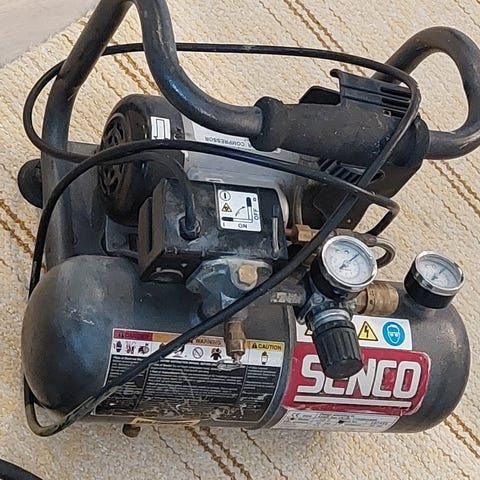 Kompressorin tuuletinpropelli rikki, mutta toimii kokemuksen mukaan lähes normaalisti, eli voi käyttää naulaimia yms.
