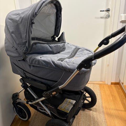 Vähällä käytöllä olleet Emmaljungan Super Viking (vaunukoppa, väri: Lounge Grey) / Viking (ratasosa, väri: Lounge Black) yhdistelmävaunut. Umpikumiset renkaat ja kääntyvät/lukittavat etupyörät. Ratasosassa hyönteisverkko+UV-suoja sekä malliin kuuluva lämpöpussi (väri: Lounge Black), jota voi käyttää myös istuinpehmusteena. Mukaan lisäksi Emma-merkkinen sadesuoja.