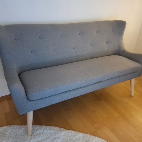 Kaunis ja hyväkuntoinen kahden hengen sohva. Valkoiset vaihtopäälliset tulee mukana. Päälliset on pestävät, myös rungon kangas. Sohva on uuttavastaava.
