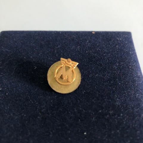 The Topname in Shoes. Pinssit 931-3561 lukee takana. Kenkämessuilta 80-90-luvulta varmaan Saksasta (Pirmasens).
