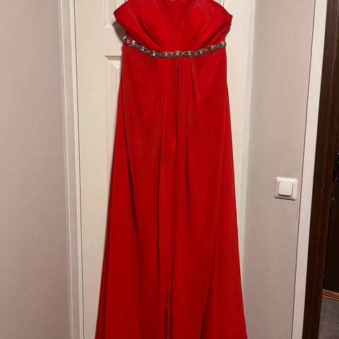 Iltapuku hartiahuivin kanssa, täyspitkä, hyväkuntoinen