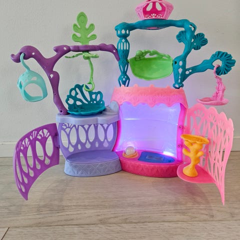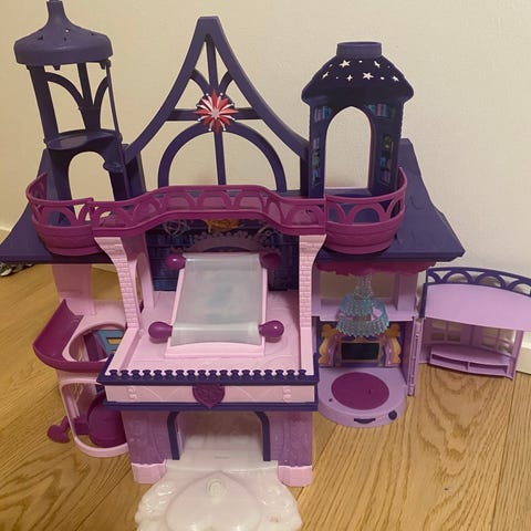 Myydään iso My Little Pony -linna ja kuvassa näkyvät ponit.