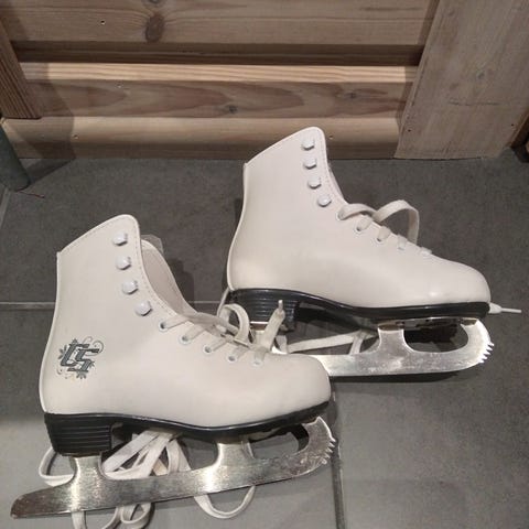 CCM pirouette lasten luistimet koko 34, valkoinen väri. Materiaalina on keinonahka ja terät ovat metalliset. Kaunoluistimet, joiden toinen pohjallinen hävinnyt! Eli pohjallinen on ostajan hankittava/lainattava toisista kengistä yms. Pohjallisen mitta n.21,2cm. Teroituksen jälkeen luisteltu vain muutama kerta.