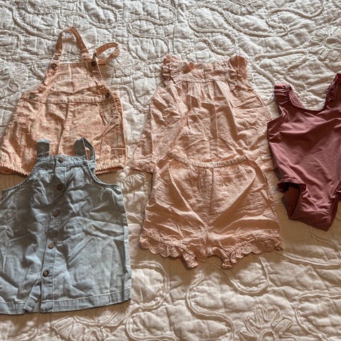 Erinomaisessa kunnosa oleva, yhdellä lapsella pari kertaa käytetty vaatepaketti. Newbien mekko koossa 98, Newbien jarrusukkahousut koossa 98/104 sekä Citat-merkkiset kiiltonahkakengät koossa 23.