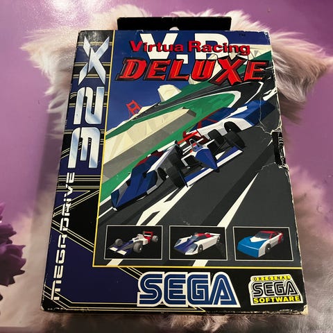 Space Harrier -peli Sega 32X:lle. Peli on toimiva. Siisti kunto, boksin reunoissa hieman jälkiä.