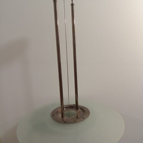 Siistissä kunnossa oleva lasinen kattovalaisin. Kiinnitysmetalli puuttuu.
