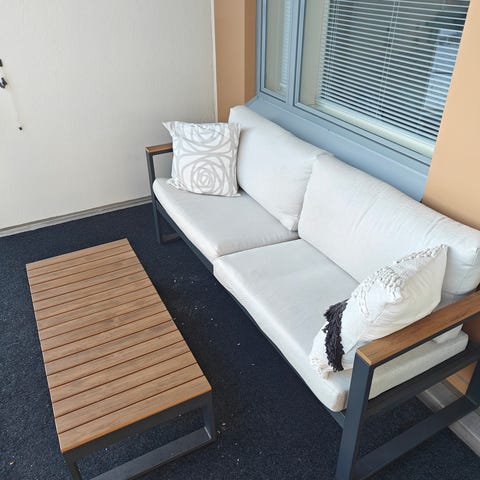Sohva on ostettu Maskusta noin kolme vuotta sitten ja on ollut aina parvekkeella kesät, mutta talvet säilytyksessä sisällä.