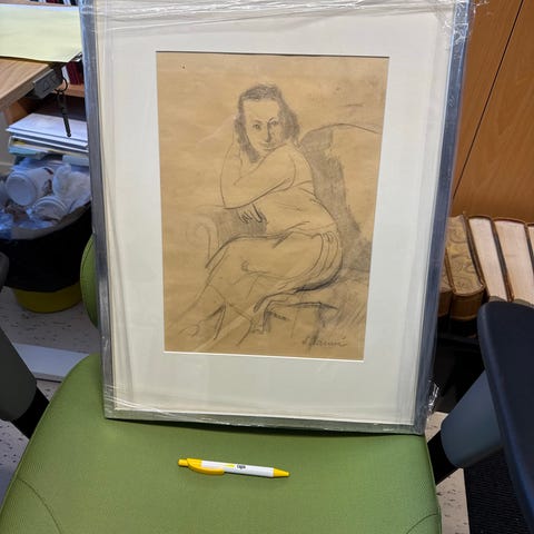 Piirros tehty Yläneellä ja annettu henkilölle, joka on kuvassa mallina.