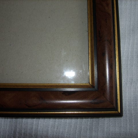 Kehyksen toinen puoli mennyt rikki, joten olen kiinnittänyt sen kaksipuolisella teipillä seinään.