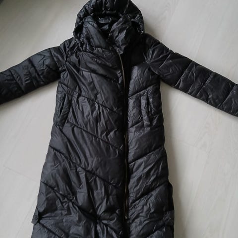 Käytetty kunto. Ei suuria kulumia. Hihoissa pientä jälkeä. Ei näy kun vaan läheltä (kuva). Muuten todella hyvässä kunnossa. Taskuissa ei vetoketjua tai nappia, mutta aukeaa vain ylöspäin, joten tavarat ei tipu. Vetoketju aukeaa myös alhaalta päin.