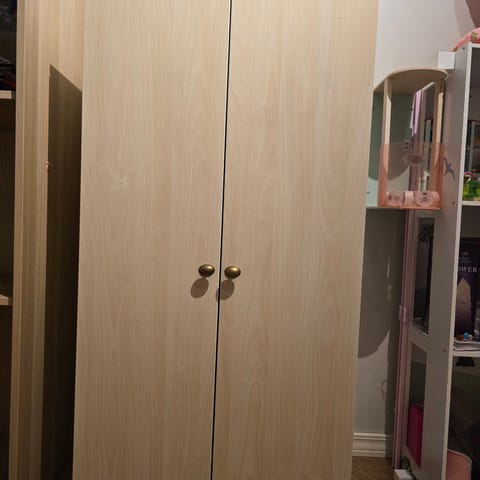 Siisti hyllykomero harmalla ovella.