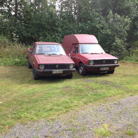 Tallin tyhjennystä, toimivasta autosta purettu. Kori mennyt jo paaliin.