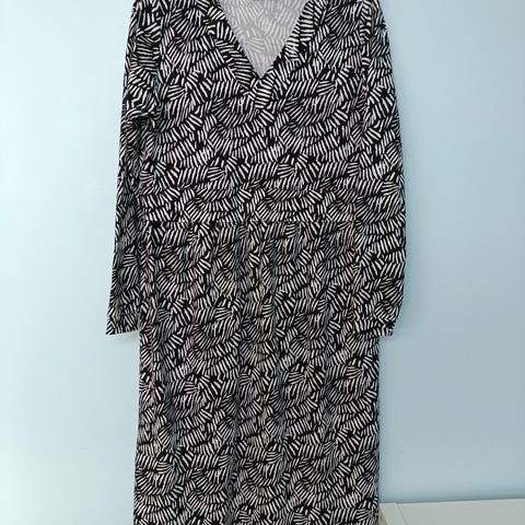 Nosh rytmi mekko, koko M. Taskut sivuilla. 95 % puuvilla, 5 % elastaani. Uudenveroinen kunto, muutaman kerran käytetty. Pehmoinen ja uutta vastaava kunto. Olka-helma mitta 101 cm. Normaalia reilumpaa mitoitusta, reilu M koko. Menee myös isommalle ja materiaalin vuoksi myös hyvin joustava/myötä antava.