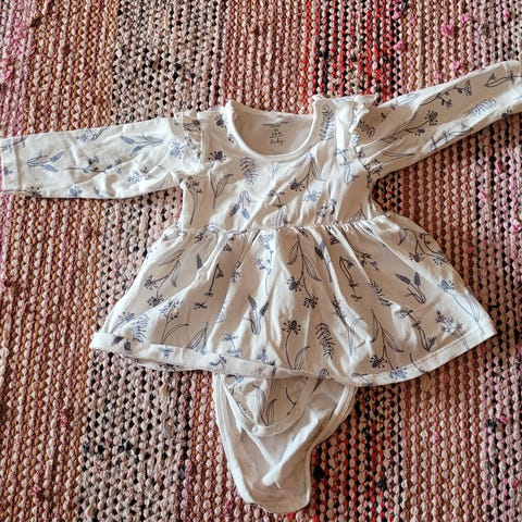 Polarn O. Pyret kaunis bodymekko. Tämä ollut päällä kerran tai kaksi vaatepaljoudessa, joten kunto on uutta vastaava. Koko 62, mutta on reilu koko ja menee vielä 68 koossakin. Olkapäillä kauniit röyhelöt ja molemmin puolin napit olalla helpottamaan pukemista.