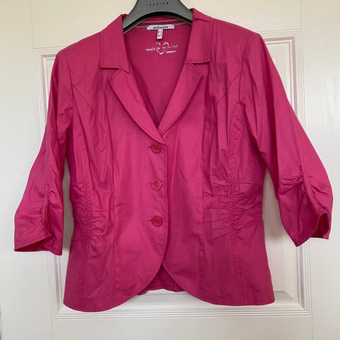 Nauhoilla kietaistava jakku. Hieman karheaa kangasta. Koko 42, mutta sopii paremmin koolle 40.