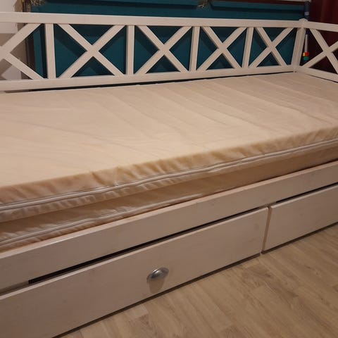 Ok kuntoiset runkopatja ja petari mukaan. Päiväpeitto ei kuulu kauppaan.