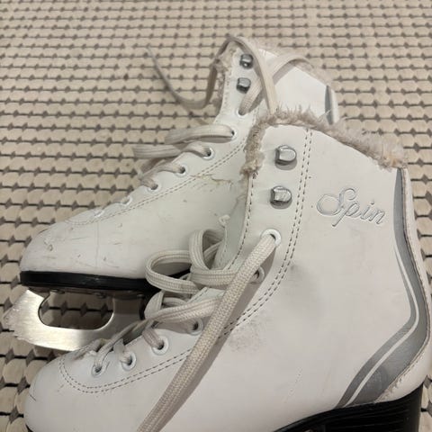 Spin luistimet lasten koko 30, valkoinen väri, soveltuvat muuhun luisteluun. Luistimet on valmistettu keinonahasta ja niissä on perinteinen nauhakiinnitys.