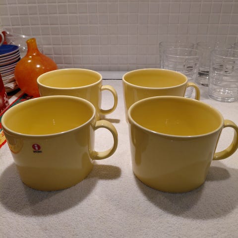 Mukit on ehjiä, mutta käytössä kuluneita. 4,-/kpl