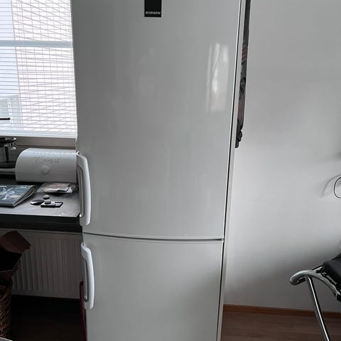 UPO Jääkaappipakastin punainen väri. Sisältää jääkaappi- ja pakastinosat, useita hyllyjä ja ovitaskuja säilytystarpeisiin.