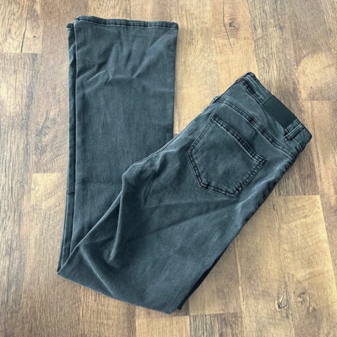 Vyötärön resorin leveys 42-43cm, korkeus 4cm. Lahkeen ulkoreunan mitta 95cm ja sisäreuna noin 73,5cm. Pepusta tyköistuva malli. Leikkaus lahkeen alaosaan päin kapeneva.