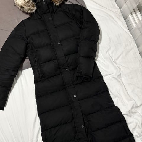 Muutama vuosi sitten ostettu hyvässä kunnossa oleva lämmin toppatakki, joka ylettää noin sääriin asti ja takissa on alhaalla napit, jotka saa avattua (4 kuva) 😊
