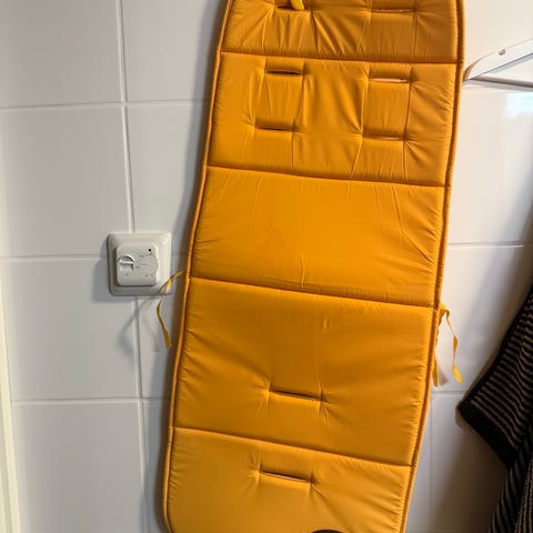 Kaksi istuinpehmustetta yhteensä 8 euroa. Raidallinen on Nordbjørn ja röyhelöihin Petite Cherie. Molemmat pesty hajusteettomalla pesuaineella.