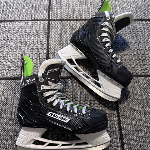 Bauer XLS jääkiekkoluistimet, koko 40. Luistimissa on musta ulkopinta ja vihreä sisävuori. Sopivat jääkiekon harrastamiseen.