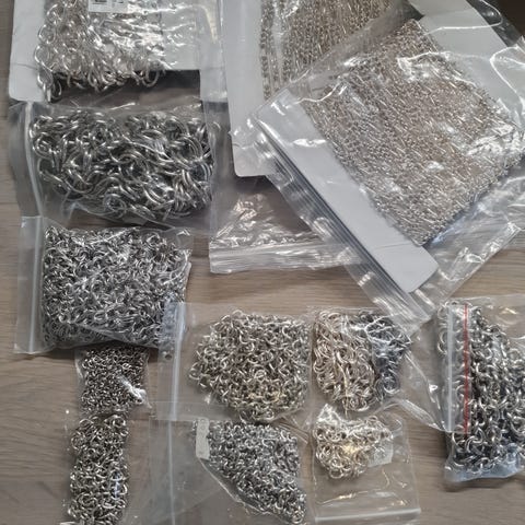 Erilaisia ketjuja. Hinta yhteensä 6e