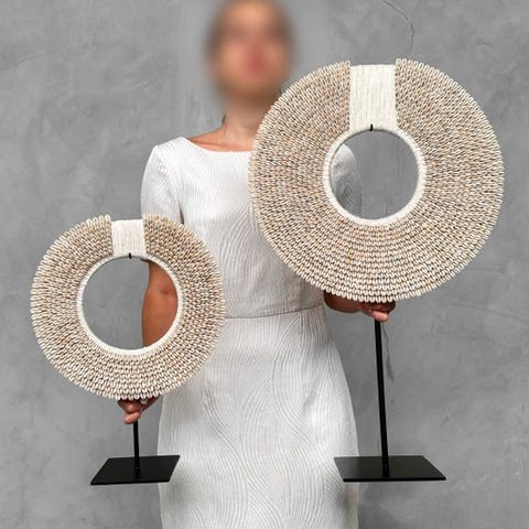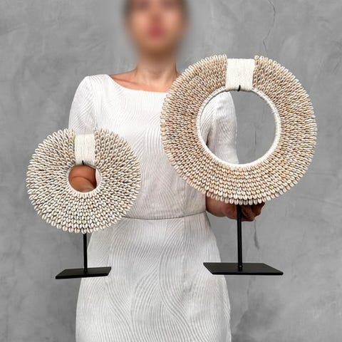 Koriste-esine (2) - A Pair of Caramel Colored Tolai Necklaces on custom stands