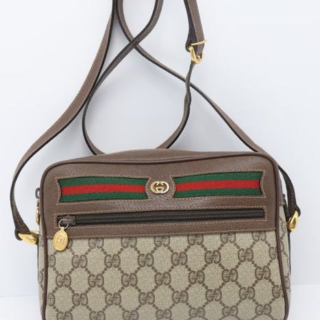 Nahkainen olkalaukku yläkädensijalla ja säädettävällä olkahihnalla. Varustettu GG-logolla. Vintage-tyylinen muotoilu.