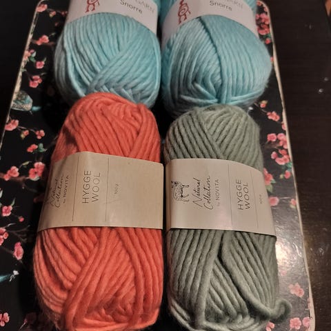 Paljon villalankoja. Kaikki on seiskaveikkaa, jossa on 75% villaa ja loput 26 % polyamidia. Myyn pois, jos joku haluaa ostaa. Pussukan, jossa langat on, niin saa mukaan.