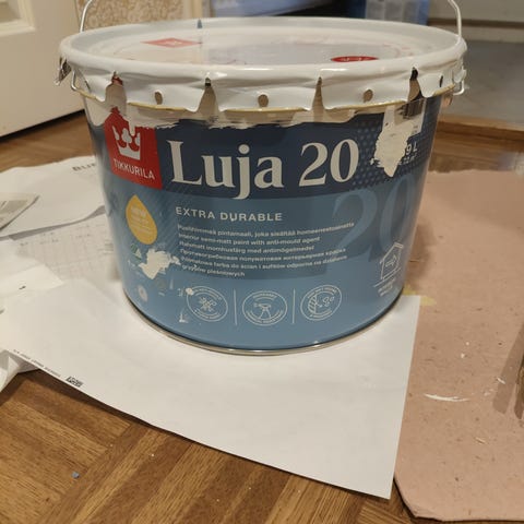 Avaamattomat, 03/25 ostetut Rusta Nyans seinämaalit sävyissä: valkoinen (1 White) ja pellava (4 Linen).