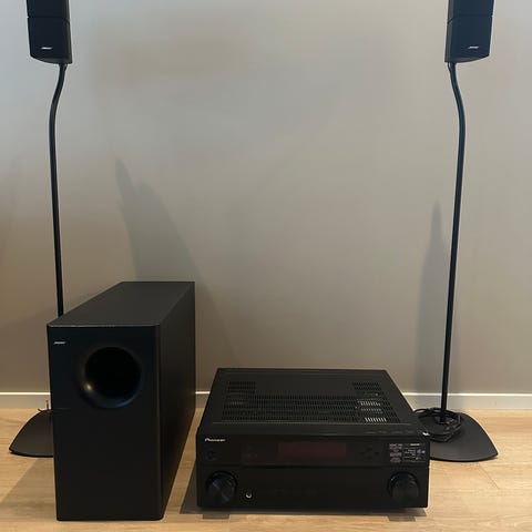 Kaunis Bose Acoustimass 5 Series III valkoisena, erittäin hyvässä kunnossa, vain etulevy on värjäytynyt, testattu ja toimiva. Satelliittikaiuttimet ovat siistit, vain kevyitä käytön jälkiä (katso kuvat).