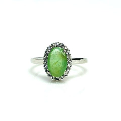 Luonnollinen smaragdi – 925 sterlinghopeaa – 18 karaatin valkokullattu – Sambian alkuperä