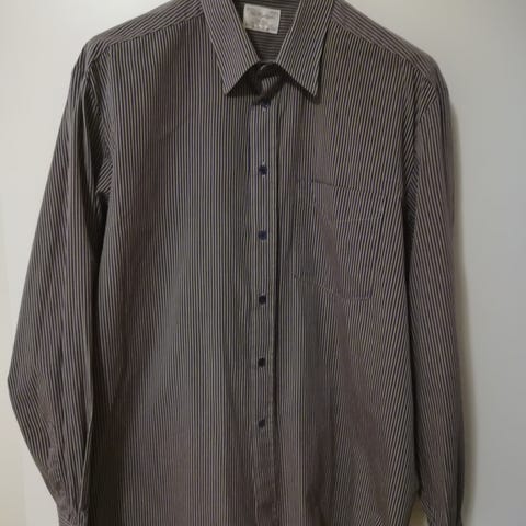 Käyttämätön Melka-merkkinen miesten D47-koon kauluspaita avaamattomassa myyntipakkauksessaan. Materiaalit: puuvilla (70%) / polyesteri (30%).