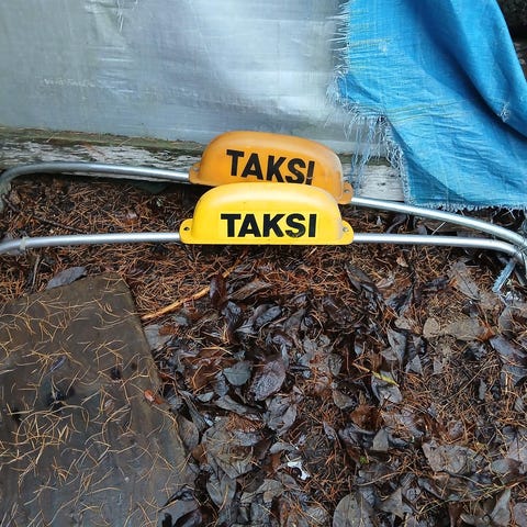 Taksin vapaavalo kyltti -70 luvulta. Saanut kolhuja, mutta valo toimii.